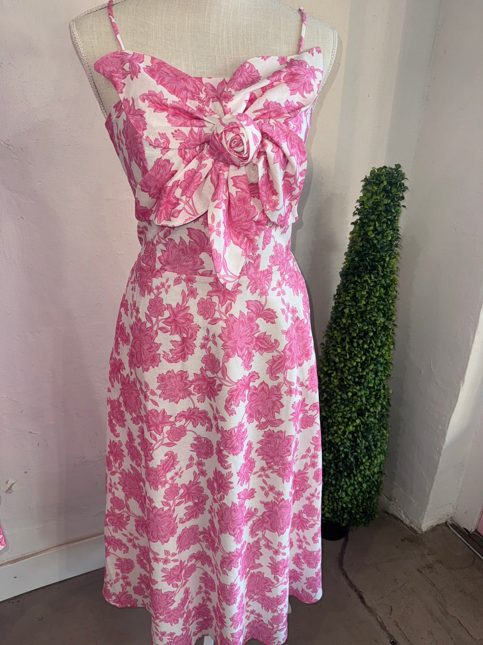 Pink Floral detailed Dress With adjustable straps