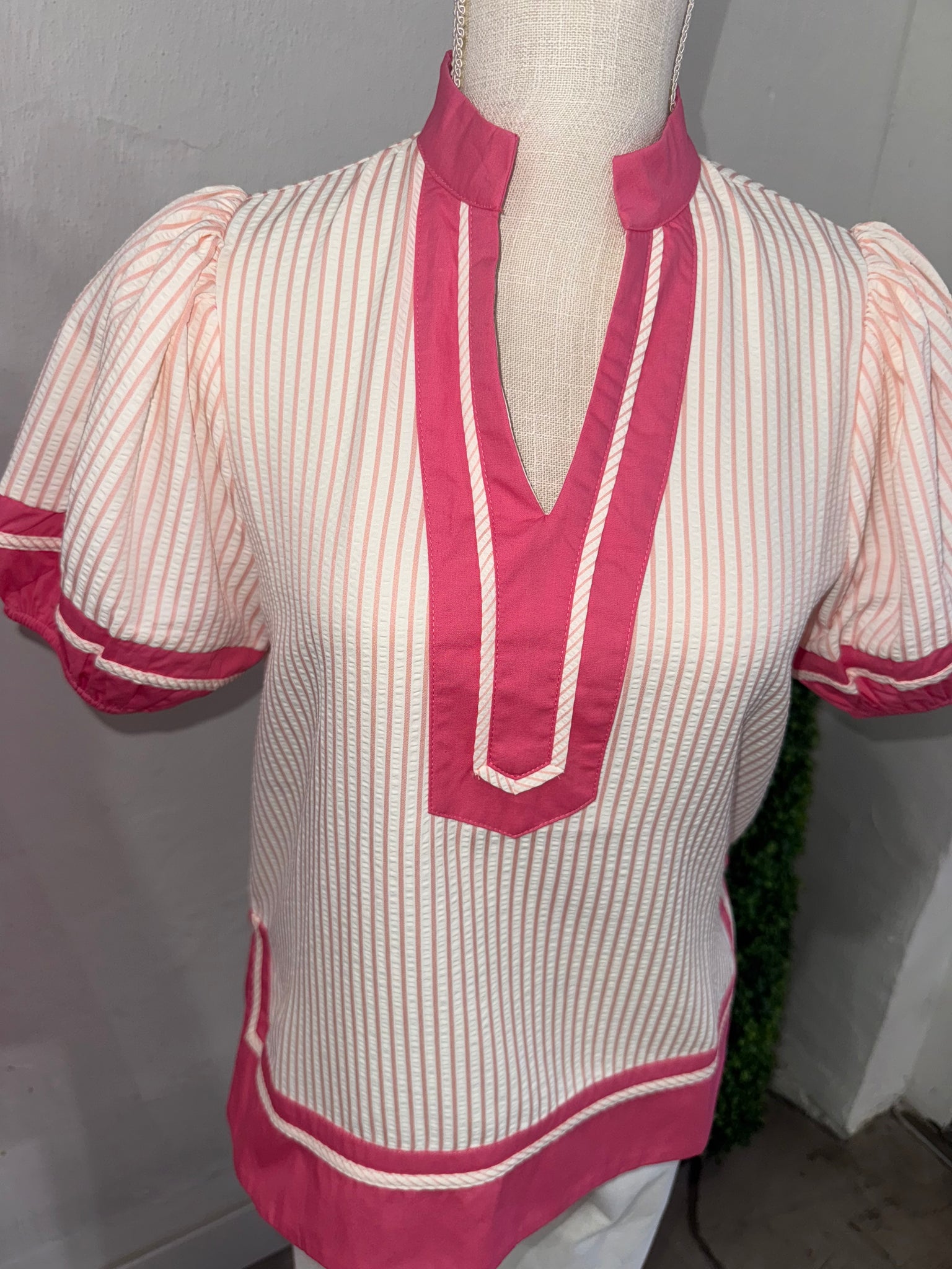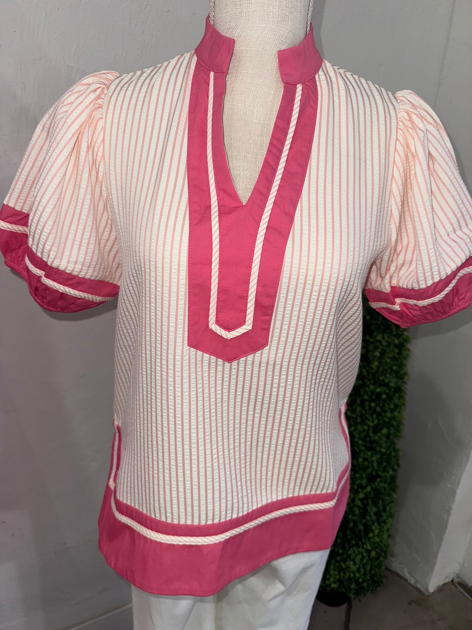Pink & White Stripe Detail Short Sleeve Blouse
