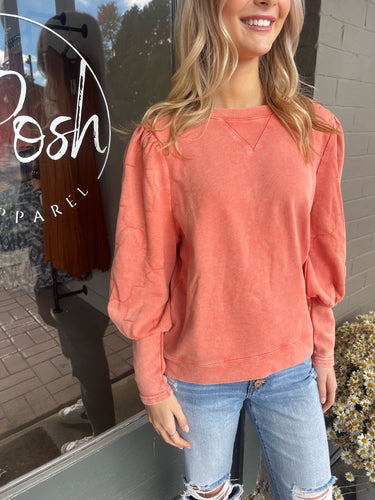 Orange Quilted Puff Sleeve Sweatshirt