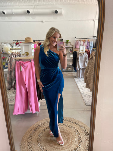 Teal Velvet Split Dress