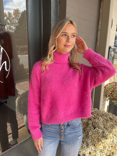 Hot Pink Turtleneck Sweater