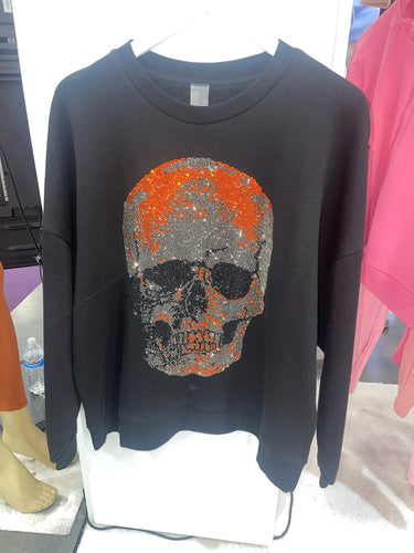 Orange Rhinestone Skull Sweatshirt